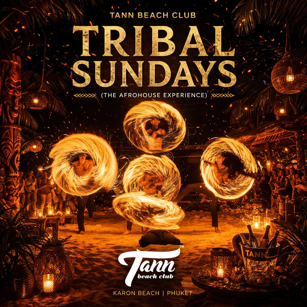 Tribal Sunday at Tann Beach Club. Experience the pulse of the wild as the sun dips below the Karon horizon.